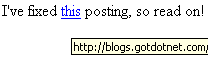 Prior to Outlook 2003, it was unfortunate in that you could never see the URL that a link was going to open; NewsGator 1.2 adds tooltips to most links: