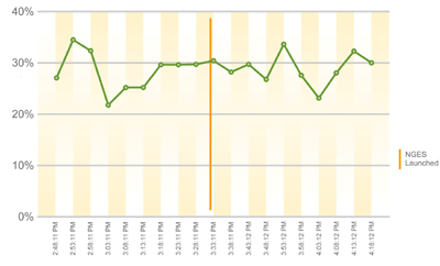 The orange line shows the time when NGES was switched on in Exchange sync mode. Variability in the data is mostly due to the (intentional) randomness of the load simulator. Basically, what this and other data tells us is that there is little effect to the Exchange server of running NGES against it - which soothes a major concern of many IT folks we’ve been talking to.